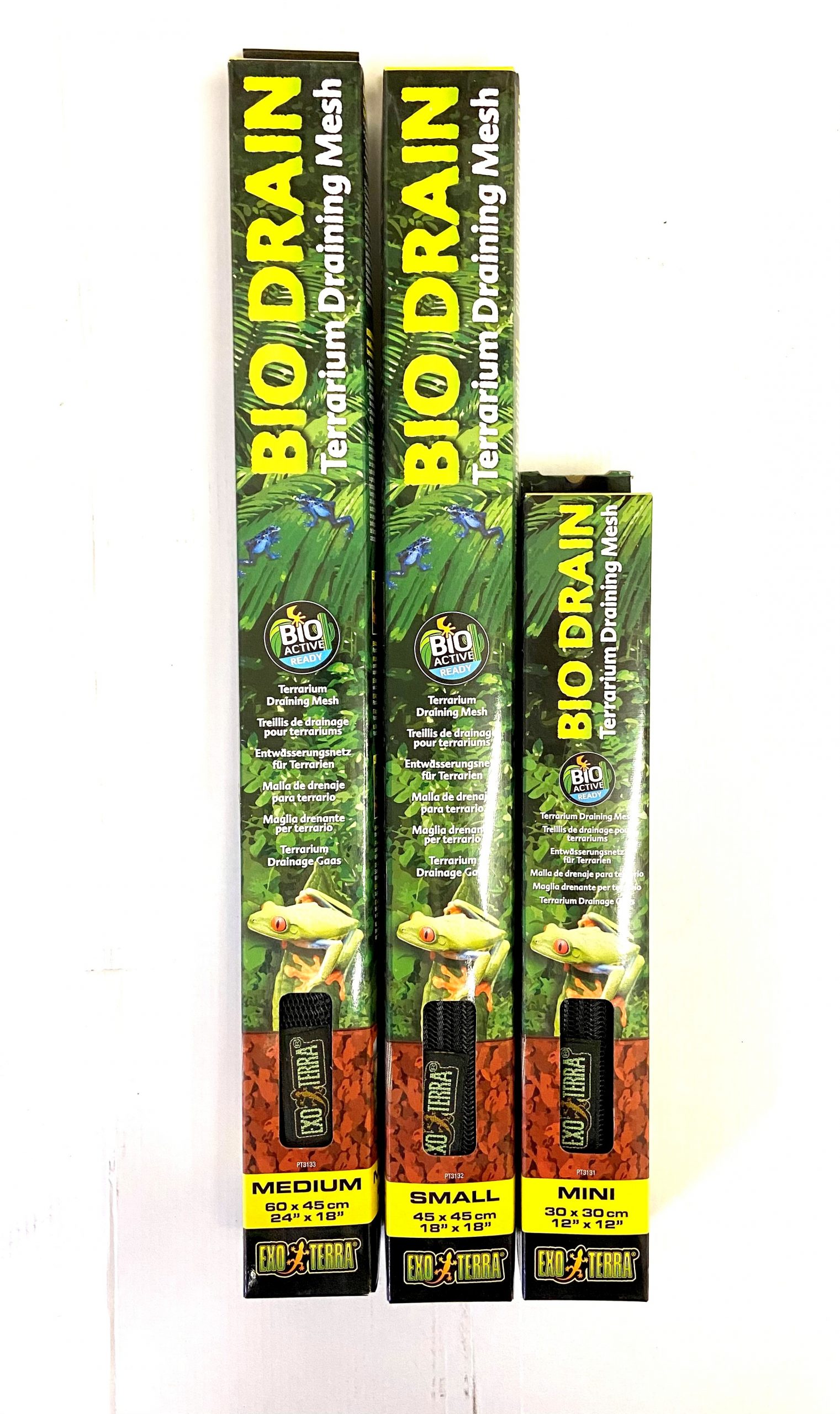 The Exo Terra BioDrain Terrarium Draining Mesh is part of the BioDrain Terrarium Draining System. The non-toxic mesh will keep the underlying Draining Substrate separated from the decorative terrarium top-layer substrate. It also allows proper water drainage when used in combination with the BioDrain Terrarium Draining Substrate, as the BioDrain Terrarium Draining Mesh prevents contamination of the water by decorative substrate particles. It is ideal to create water parts and a biological filtration system in the terrarium using the Exo Terra BioDrain Terrarium Draining Substrate. The clean terrarium water can then be circulated in waterfalls, the Exo Terra Rain System or Dripping Plants.