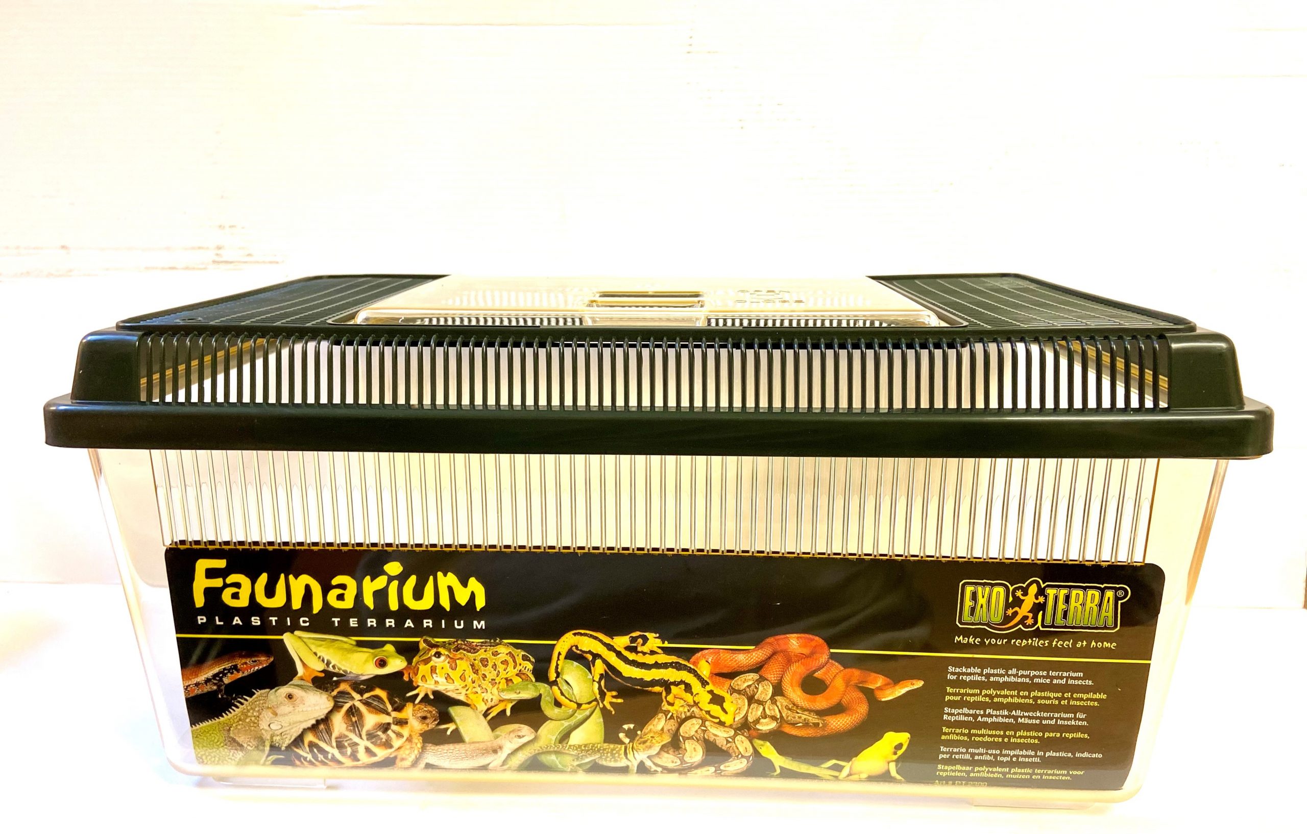 The Exo Terra Faunarium is an easy to use stackable plastic all-purpose terrarium for reptiles, amphibians, mice and arachnids and insects. It has a larger surface area than the standard faunarium making it ideal for keeping reptiles and insects that need more floor space than the standard faunarium