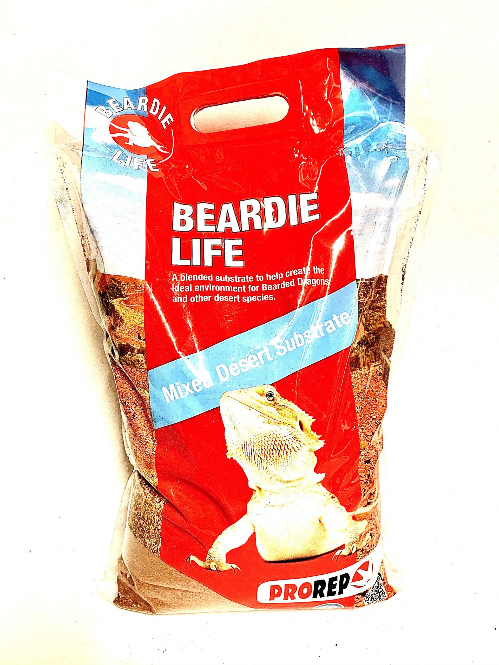ProRep Beardie Life is part of the species specific life series of substrates and has been designed to meet the needs of Bearded Dragons and other desert species. In the wild there are few species that actually live on pure sand and so Beardie Life has been designed to mimic the sandy soil more typical of desert habitats. Beardie Life contains a mixture of sand and soil to create a realistic looking and feeling substrate which encourages natural behaviour, such as digging and foraging, and which aids the maintenance of a suitable environment. The addition of soil to the mixture reduces the risk of impaction sometimes seen with pure sand, while enhancing the moisture retention ability of the substrate.